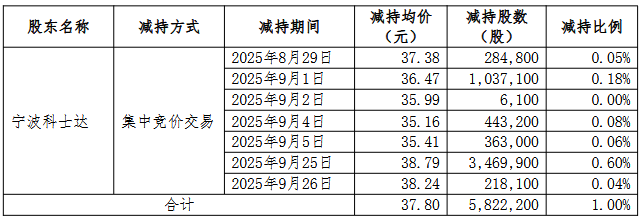 中国经济网络北京,9月29日,卡斯卡(002518.SZ)最近透露,“向1%的整数宣布了减少股东股票的1%多个股票和减少股东的实施。”据该公告称,该公司透露了“公开宣布的公告,共享股东共享“股东股票”在Juchao信息网络上于2025年7月10日。股东公司Ningbo Koshida Venture资本伙伴关系的控制权控制(有限的Partership)(有限的Partership)(有限的Partership)(有限的Partership)(有限的Partership)(有限的Partership)共张股票(Partership)(有限的Partership)(降低了Partership)的共股(Partership)共张股票(Partership)的股票销售(有限的Partership)。在公告披露日期后三个月,通过阻止或集中交易交易的5,822,该交易占公司共享总资本的1%。2025年,该公司收到了一份通知,从8月29日至2025年9月26日控制股东Ningbo Costda,Ningbo Costda通过集中交易将其持有人降低到公司的5,822,200份额,提供了公司总资本的1%。该减少计划已实施。基于减少期间平均股价为37.80元,兑现总额约为220,079,160元。经过这种股权变化后,股东的股票总数和该公司的联合行为者从357,291,610股减至351,469,410股,而处理率从61.37%降至60.37%,提高了1%。减少股份的来源是公司在首次公开报价和公司资本储量增加的公司储量增加之前持有的股份。该减少计划的实施将不会导致公司控制和WI的变化LL对公司的持续运营没有重大影响。